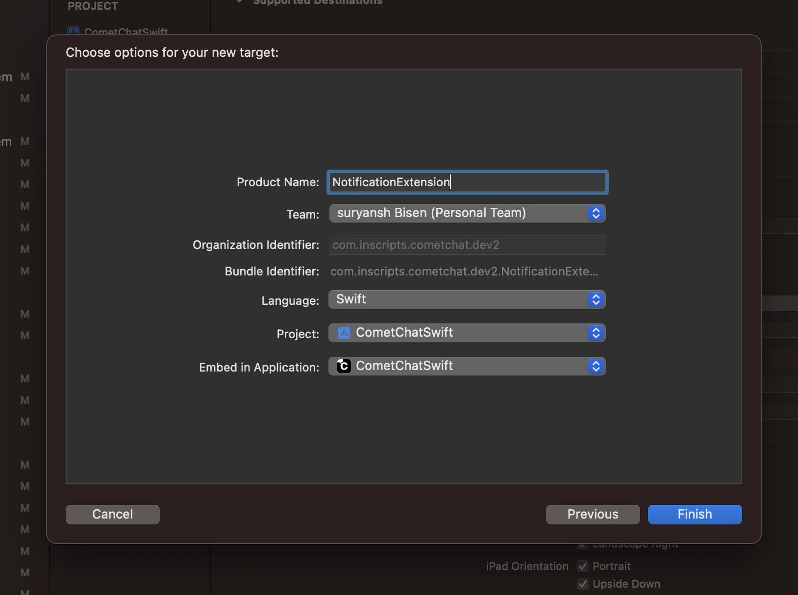 - Lastly, add CometChatSDK in your notification extension target in the pod file.