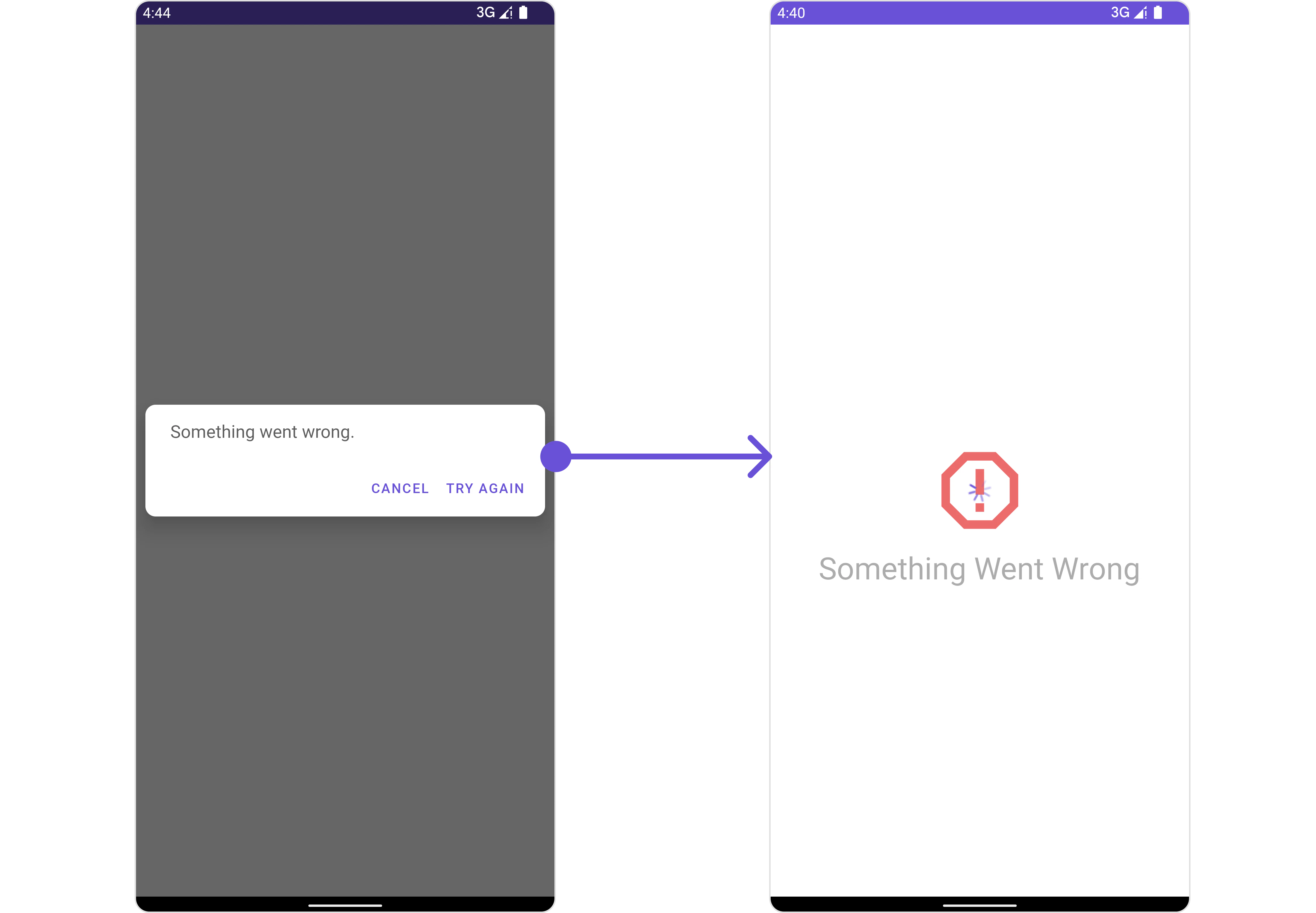We have added an error view to error_state_view_layout.xml. You can choose any view you prefer. This view should be inflated and passed to the setErrorStateView() method.