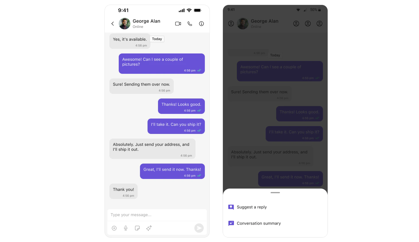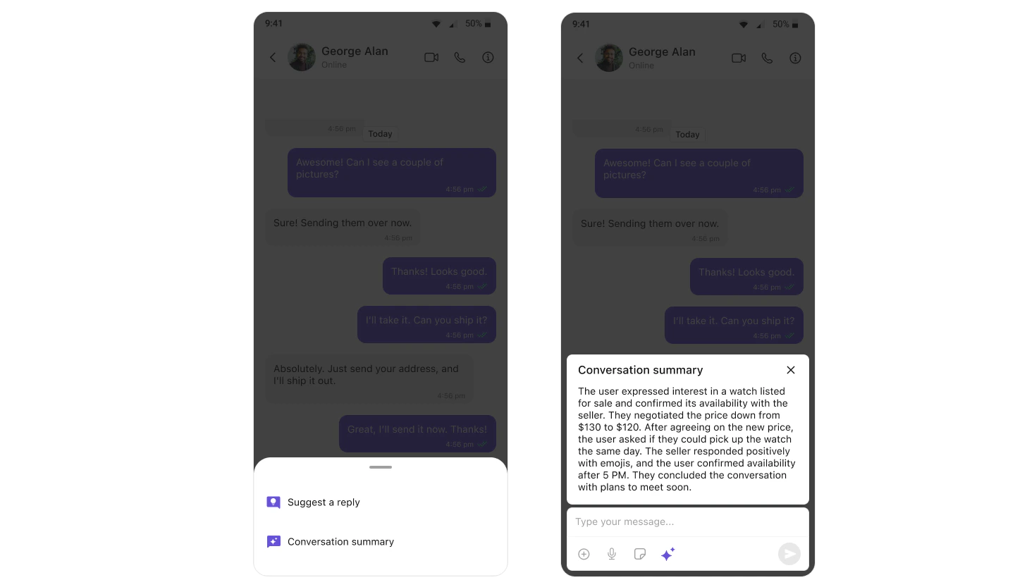 "features": ["Conversation Starter", "Smart Replies", "Conversation Summary"]