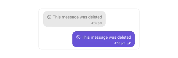 Delete bubbles display messages that have been deleted by the sender. These indicate the message removal within the chat interface. The following code snippet shows how to customize the delete message bubble: