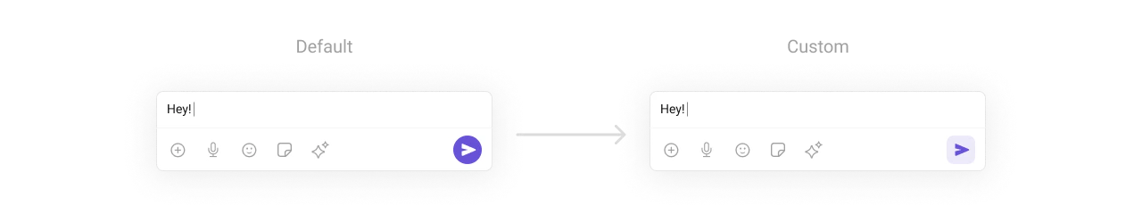 To customize the styling, you can apply theMessageComposerStyle to the MessageComposer component.