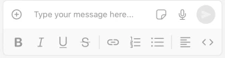 The Rich Text Formatting feature allows users to format messages with various text styles. When enabled, a formatting toolbar appears below the text input.Supported Format Types
