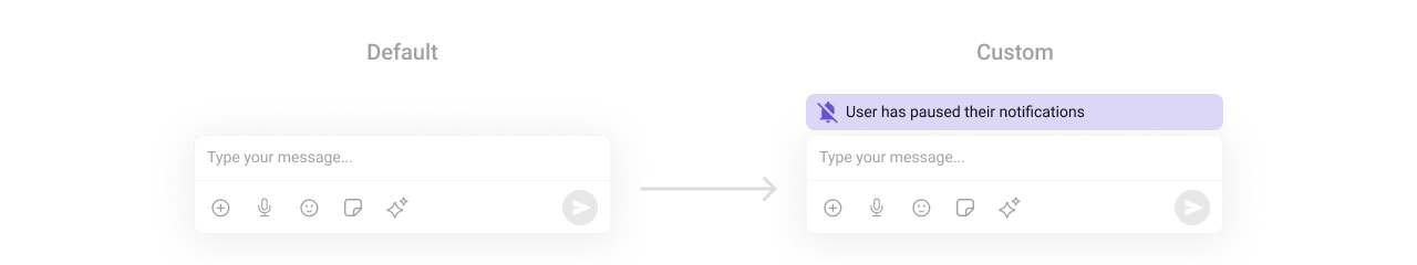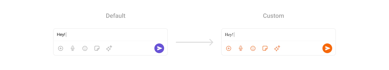 To fit your app’s design requirements, you can customize the appearance of the MessageComposer component. We provide exposed methods that allow you to modify the experience and behavior according to your specific needs.Style