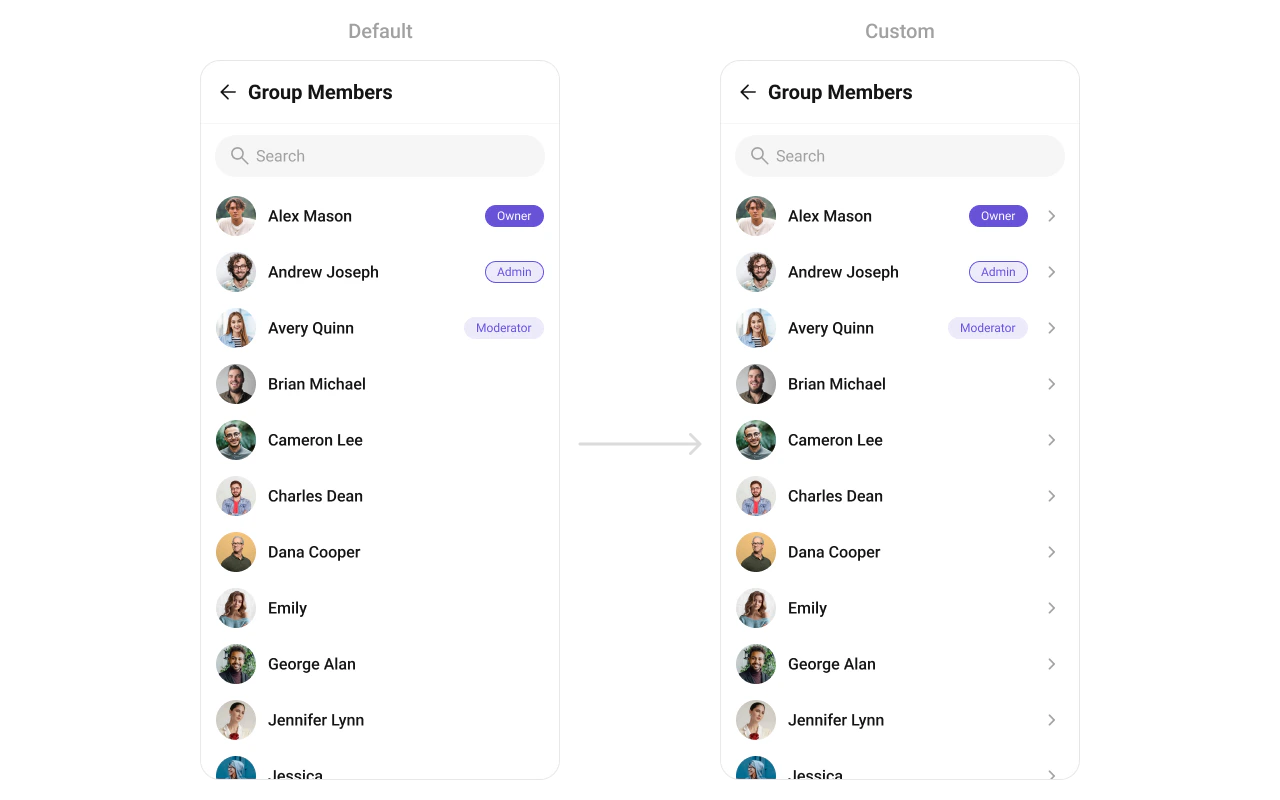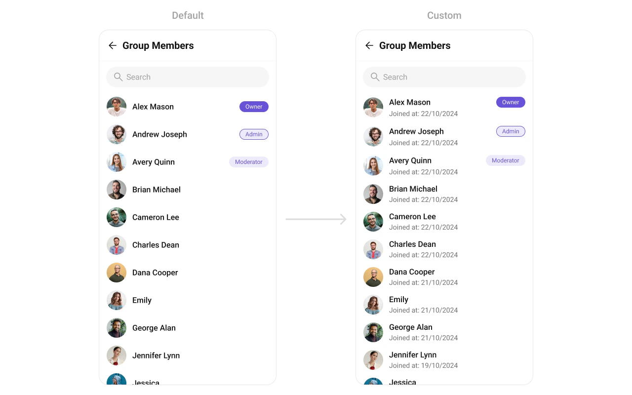 return <CometChatGroupMembers group={group} ItemView={getItemView} />;