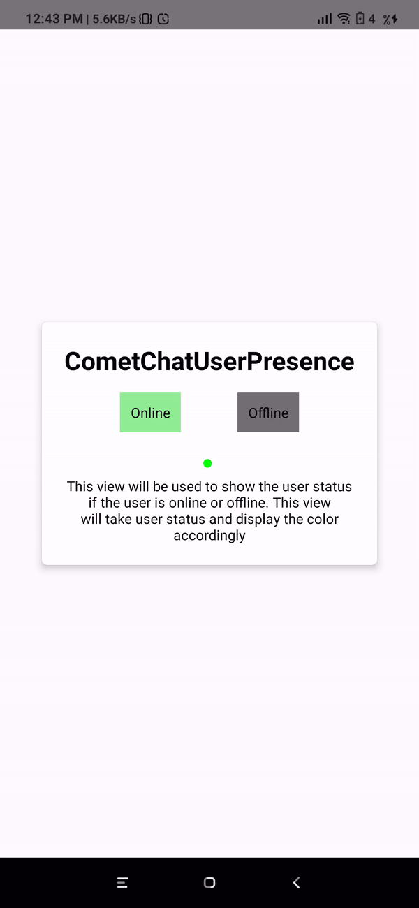 This component will be used to show the user’s online or offline status. This component will show the color based on the user’s status.