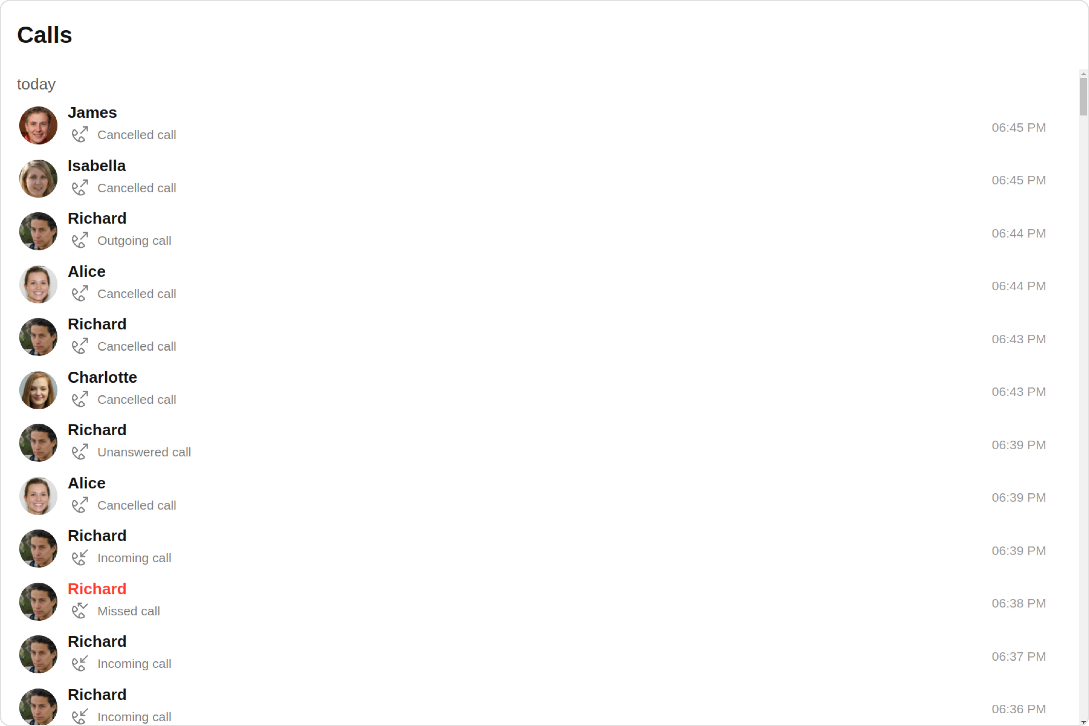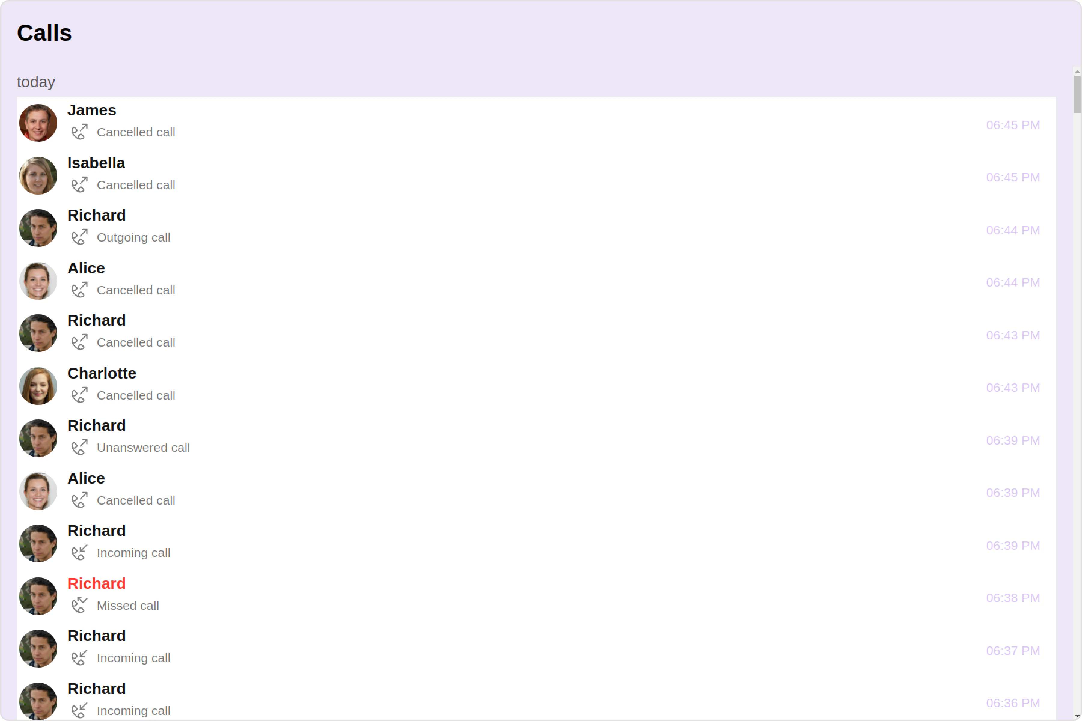 To fit your app’s design requirements, you can customize the appearance of the Call Logs component. We provide exposed methods that allow you to modify the experience and behavior according to your specific needs.Style