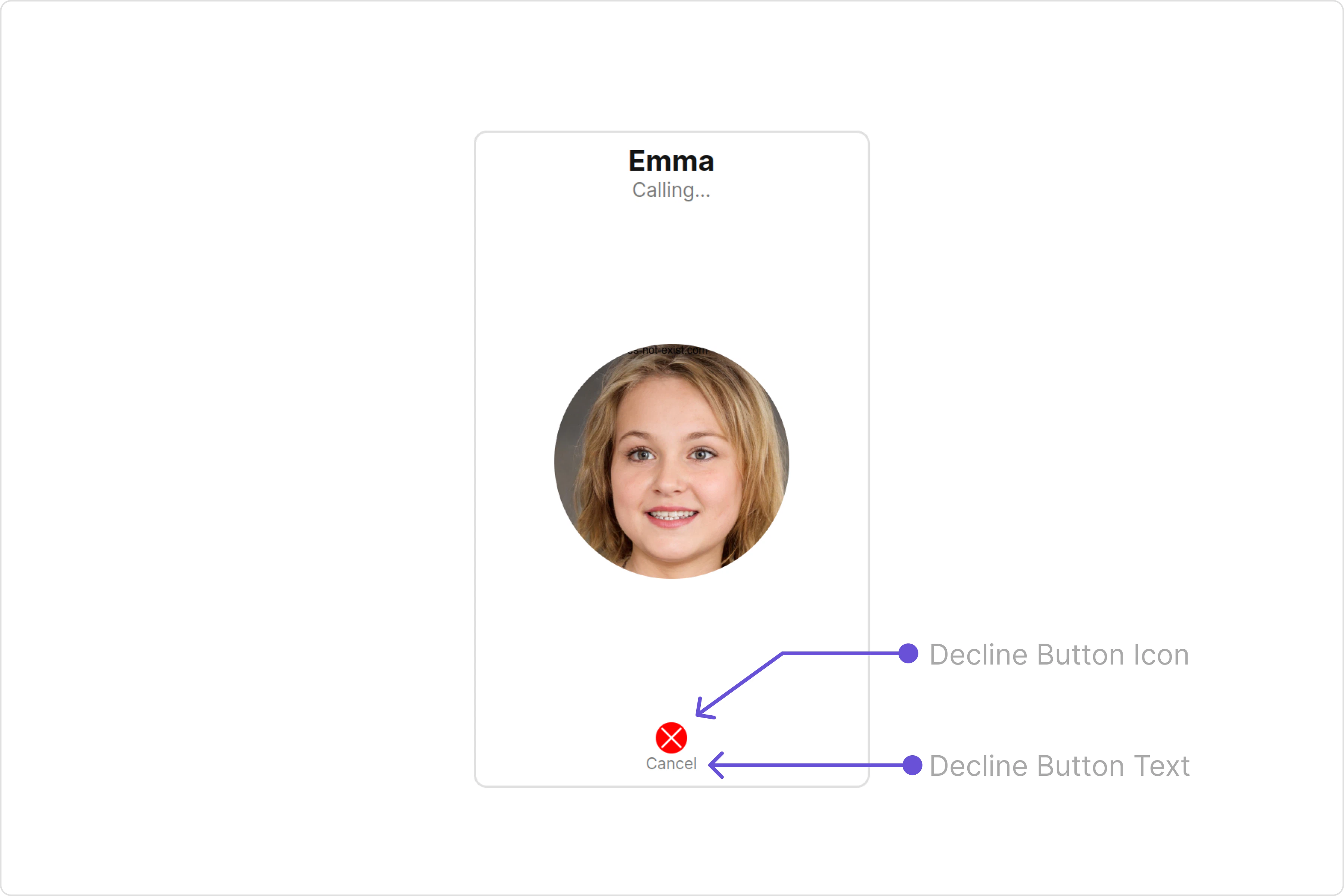 The outgoing call component is a visual representation of a user-initiated call, whether it’s a voice or video call. It serves as an interface for managing outgoing calls, providing users with essential options to control the call experience. This component typically includes information about the call recipient, call controls for canceling the call, and feedback on the call status, such as indicating when the call is in progress.