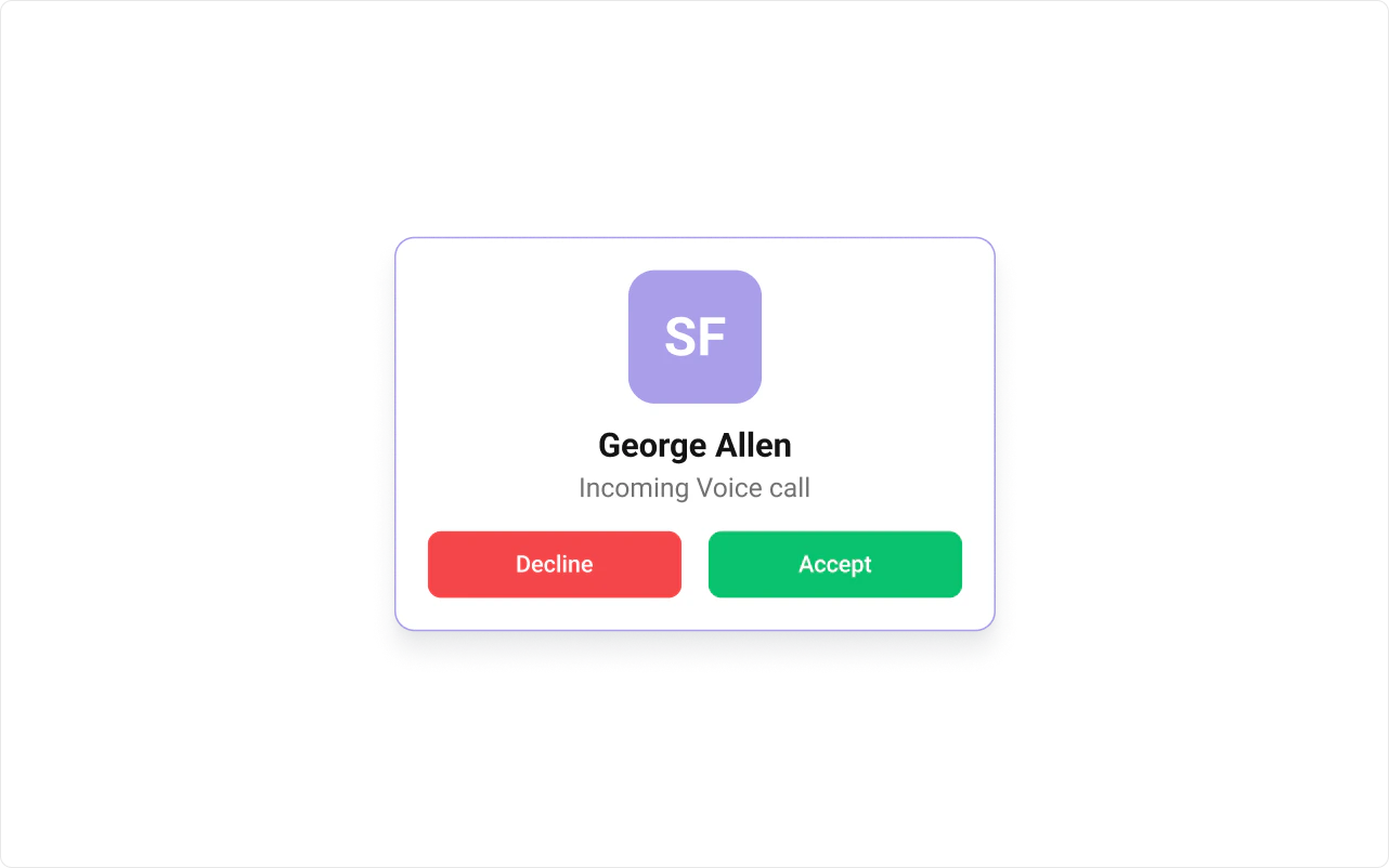 To fit your app’s design requirements, you can customize the appearance of the Incoming Call component. We provide exposed methods that allow you to modify the experience and behavior according to your specific needs.Style